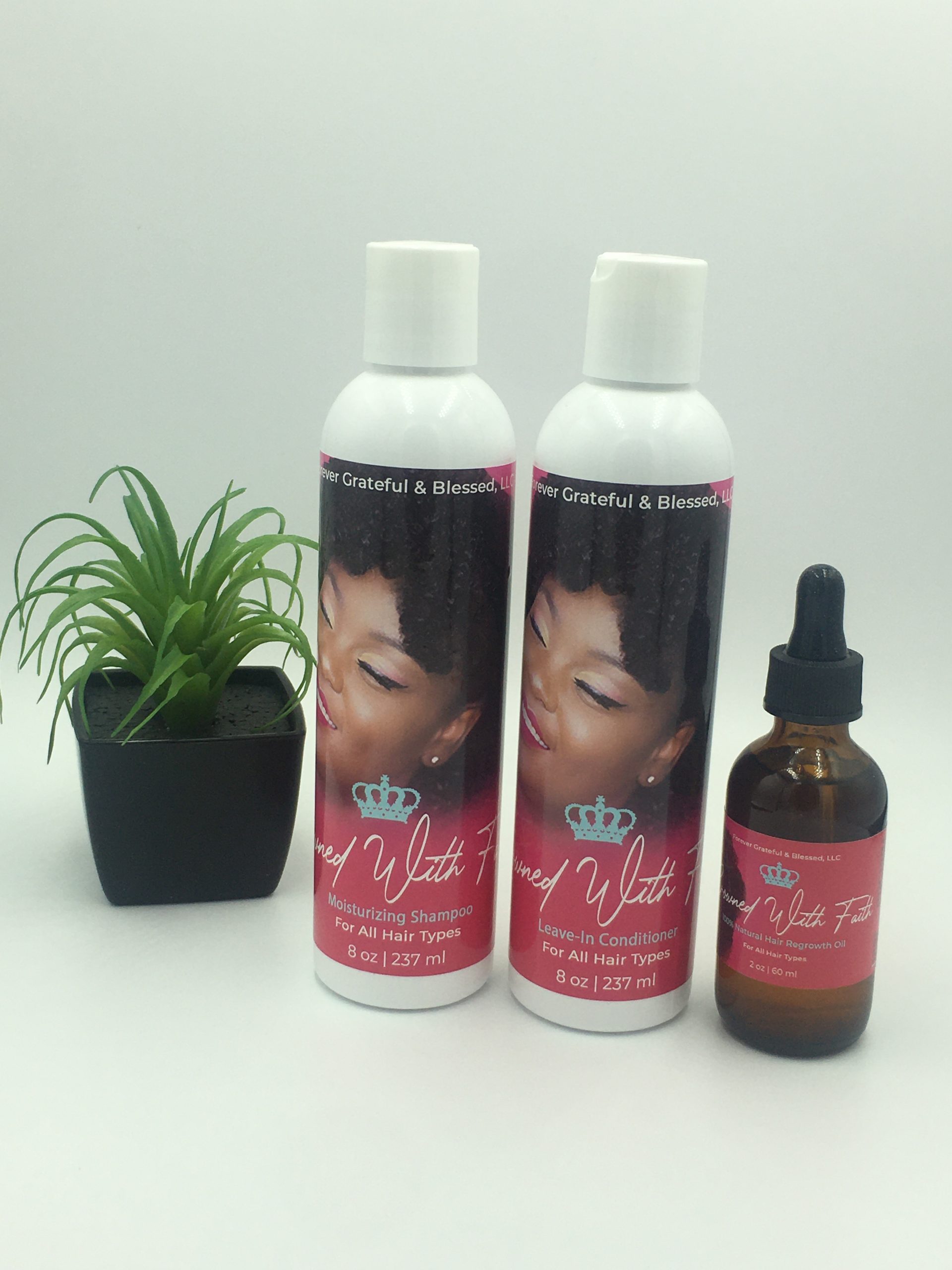 Crowned With Faith Shampoo Starter Kit is a combo which includes: